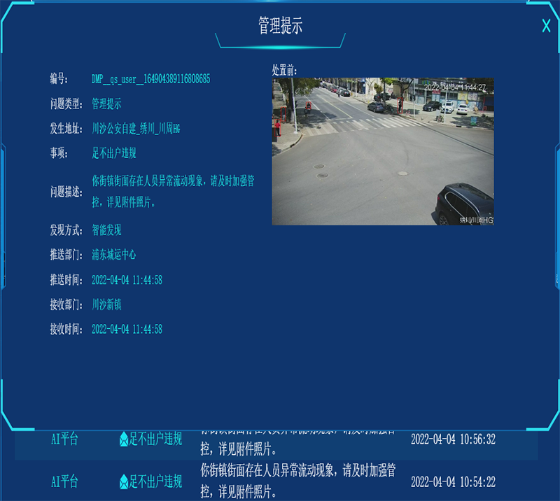 The second is to rely on the "urban brain" area and town-level platforms to realize intelligent capture and automatic push of problems, form a "problem list" and "work prompts", summarize frequently-occurring and easy-to-problem problems in a timely manner, and remind the streets and towns to further tighten the various containment measures. At the same time, the intelligent auxiliary inspection system was extended to the secondary duty platform of the street and town in a timely manner to empower the street and town to actively discover and solve problems.