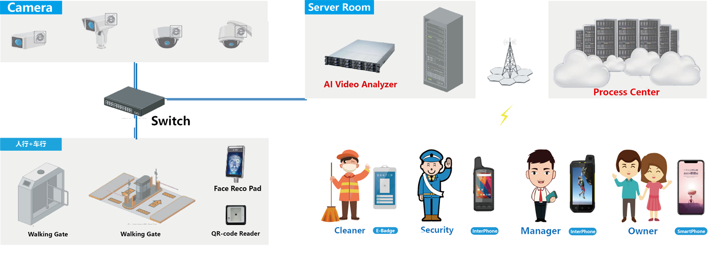 This solution realizes the intelligent upgrade of park security and park management applications through the loading of AI technology, and improves the park security level and management efficiency.