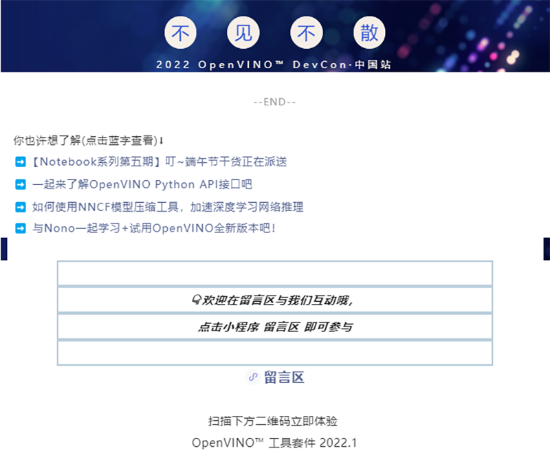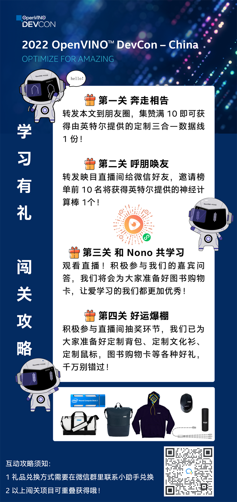 為了讓大家能夠更深入的參與和體驗(yàn),本次峰會(huì)特設(shè) Demo 環(huán)節(jié)。感興趣的小伙伴請(qǐng)?zhí)崆跋螺d和安裝 OpenVINO? 工具套件,以便活動(dòng)時(shí)能夠更好的參與哦。