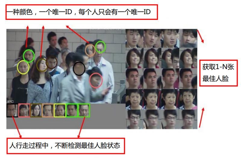 趨視科技利用2D轉(zhuǎn)3D場(chǎng)景建模、“準(zhǔn)3D視頻分析算法+3D場(chǎng)景識(shí)別+肢體能量模型”技術(shù),大幅提升AI算法分析的準(zhǔn)確性,解決復(fù)雜場(chǎng)景下重疊人員的“分離”、分析、跟蹤。對(duì)人臉,趨視科技采取對(duì)每個(gè)人、每種顏色賦予唯一ID的方式進(jìn)行標(biāo)定,并在運(yùn)動(dòng)過(guò)程中捕捉最佳人臉,從而提升識(shí)別的準(zhǔn)確性。人員檢測(cè)中,在相機(jī)標(biāo)定參數(shù)指導(dǎo)下融合多種人員檢測(cè)方法,例如人臉檢測(cè)、頭肩檢測(cè)、基于靜態(tài)圖像和深度學(xué)習(xí)的檢測(cè)、基于目標(biāo)形狀及尺寸的檢測(cè)、基于運(yùn)動(dòng)形態(tài)的檢測(cè)等。人員跟蹤時(shí),與人臉識(shí)別有些類(lèi)似,當(dāng)人物目標(biāo)出現(xiàn)在攝像機(jī)中,系統(tǒng)即識(shí)別人員目標(biāo)并分配唯一ID標(biāo)識(shí),接著對(duì)移動(dòng)人員進(jìn)行跟蹤。
