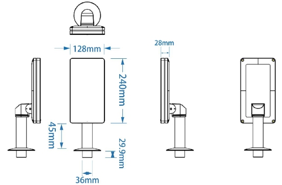 設(shè)備尺寸 | 128(寬)×28(厚)×240(高)mm |